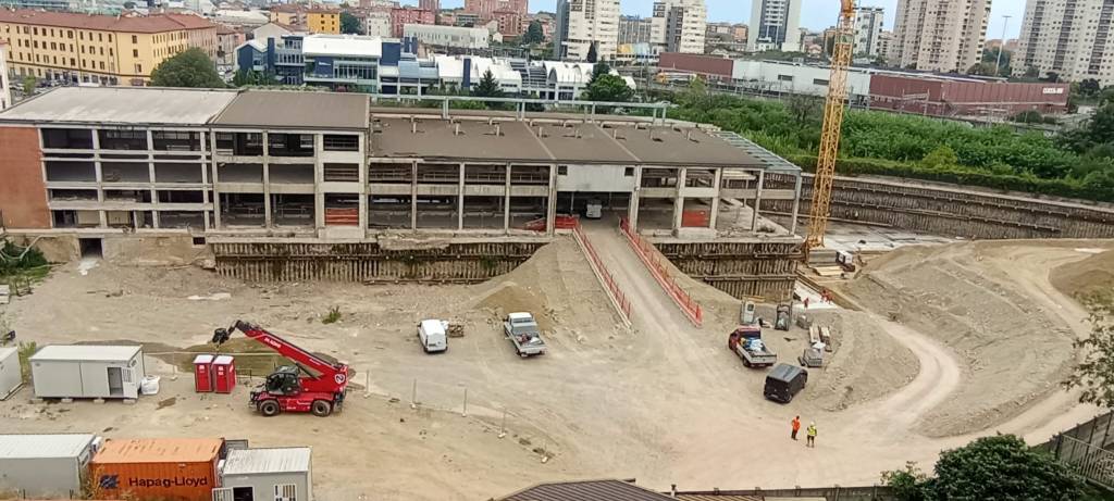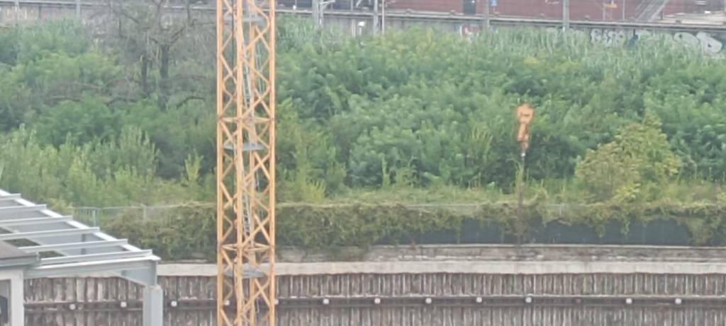 Superata l’entrata di un condominio (cui parliamo più avanti), dove una volta c’era la sede della Sandvik, c’è un cantiere, con enormi cartelloni che riportano le foto del già costruito di cui dicevo più sopra, e un parco, che al momento è una foresta abbandonata, ma dalle foto diventerà splendido. Al momento cantiere e verde sono così